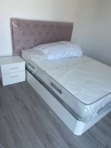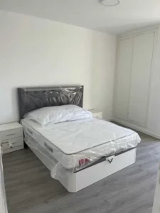 - Quarto confortável com cama completa e edredão, 2 mesinhas de cabeceira e roupeiro embutido.